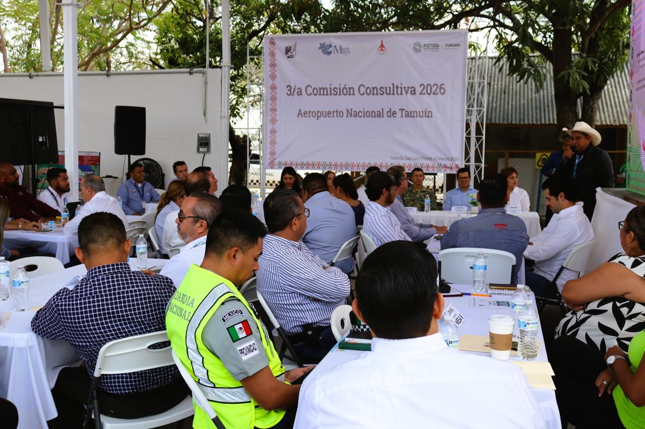 • La reunión consultiva permitió revisar avances y sumar esfuerzos entre autoridades y sectores productivos para fortalecer la conectividad aérea en la Huasteca Potosina.