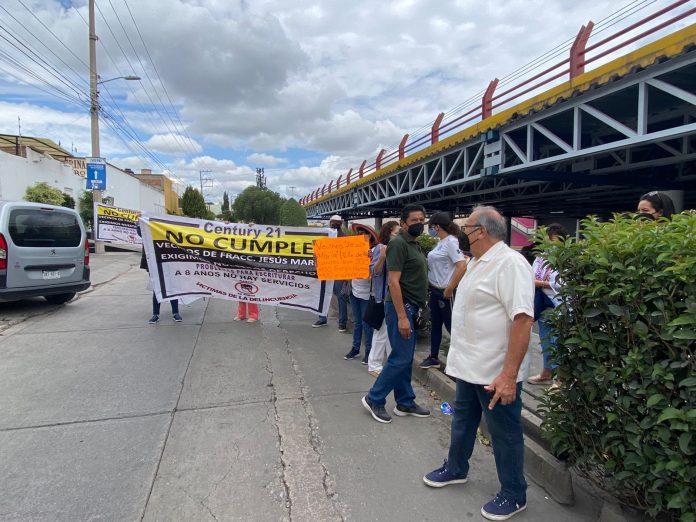 Habitantes del Fraccionamiento Jesús María, ubicado en el municipio de Villa de Reyes, calificaron de irresponsables y fraudulentos a los propietarios y promotores del Desarrollo Habitacional Century 21, toda vez que existe incumplimiento en los términos del Contrato de compraventa que suscribieron los adquirientes de predios. ´´Este Desarrollo es un fraude´´, dijeron decenas de colonos que se manifestaron en las oficinas del Desarrollo.