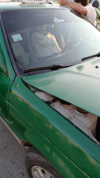 Este sujeto irresponsable, le pegó en la parte trasera a un taxi de los llamados verdes que era conducido por una mujer, misma que tuvo necesidad de atención médica debido al fuerte impacto.