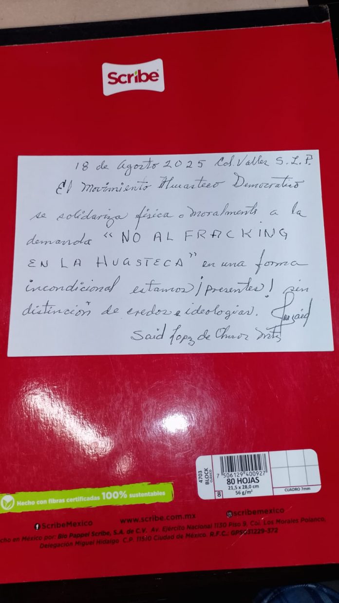 Bajo el principio de que el patrimonio indígena es sagrado y ni sus tierras, aguas y bosques deben ser explotados por nadie, el Movimiento Huasteco (MHD) Democratico se unió este lunes 18 de Agosto al frente de pueblos y comunidades indígenas tenek y nahuas contra el uso del fracking en las comunidades de pueblos originarios de la Huasteca Potosina y entidades vecinas para la extracción de petróleo.