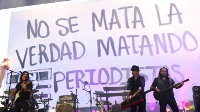 Caifanes aprovechó su tiempo en el escenario para hablar de la violencia contra la mujer, los estudiantes desaparecidos y los periodistas asesinados