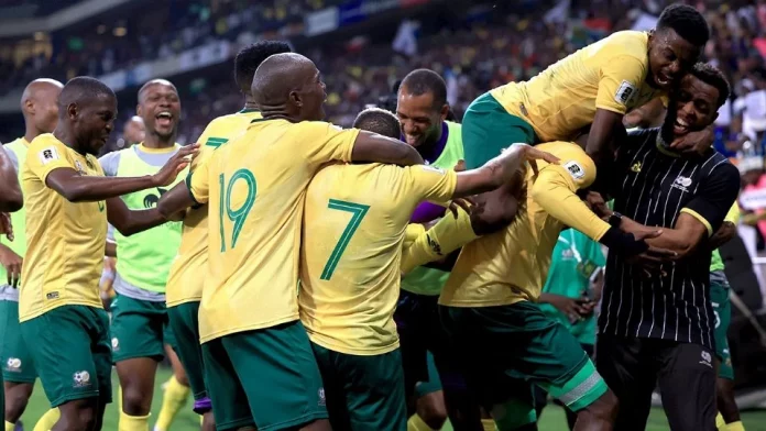 Sudáfrica se sumó al contingente de África en la Copa Mundial del año próximo tras vencer 3-0 a Ruanda, asegurándose el primer puesto de su grupo de las eliminatorias a pesar de haber sido penalizada con una deducción de tres puntos por alineación indebida al inicio del proceso.
