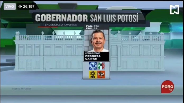 Conforme a las mediciones de la casa encuestadora MIitofsky, el abanderado de la coalición “Sí por San Luis” Octavio Pedroza Gaitán es el virtual ganador por la gubernatura de San Luis Potosí se dió a conocer en el noticiero estelar de Denise Maerker.