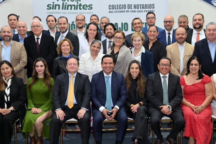 Acompañado por Juan Carlos Barrón Cerda, presidente del Colegio de Notarios, Torres Sánchez destacó que estas reuniones son productivas para fortalecer la relación entre el Gobierno y los notarios, quienes expresaron su interés en participar en proyectos que aporten seguridad jurídica en San Luis Potosí.