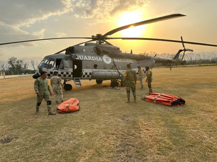 Para incrementar las actividades en la sofocación de incendios, el día de ayer arribó una aeronave de ala rotativa MI-17, perteneciente a la Defensa, la cual se sumó a los esfuerzos de las brigadas combatientes y personas voluntarias para controlar y liquidar los incendios en la Región Huasteca.