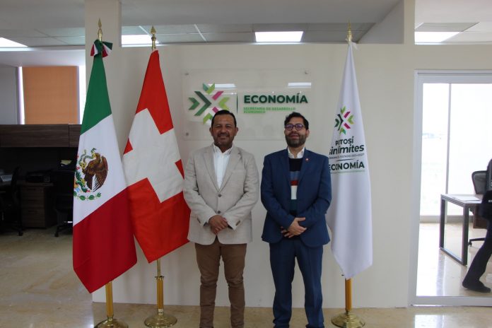 En representación del Gobernador Ricardo Gallardo Cardona, el secretario de Desarrollo Económico, Jesús Salvador González Martínez, sostuvo una reunión con Rubén Araiza Díaz, director del Swiss Business Hub México (SBH) de la Embajada de Suiza, con el objetivo de reforzar la relación bilateral y ampliar la llegada de empresas suizas al Estado, en sectores como el automotriz, aeroespacial, farmacéutico y comercio electrónico.