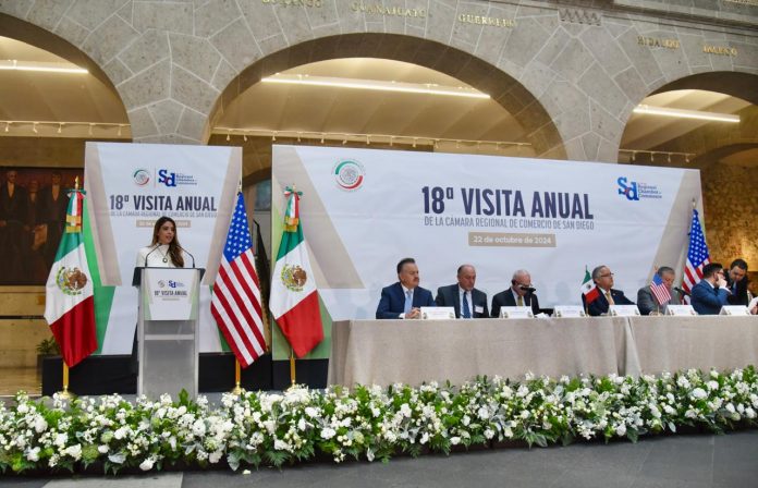 Ciudad de México, 22 de octubre.– En el marco de la 18ª visita anual de la Cámara Regional de Comercio de San Diego al Senado de la República, Ruth González Silva, destacó la relevancia de la cooperación política y económica entre México y Estados Unidos, enfatizó que ambos países enfrentan una oportunidad crucial para consolidar su relación bilateral, en términos económicos, así como en materia de políticas sociales, ambientales y de seguridad.
