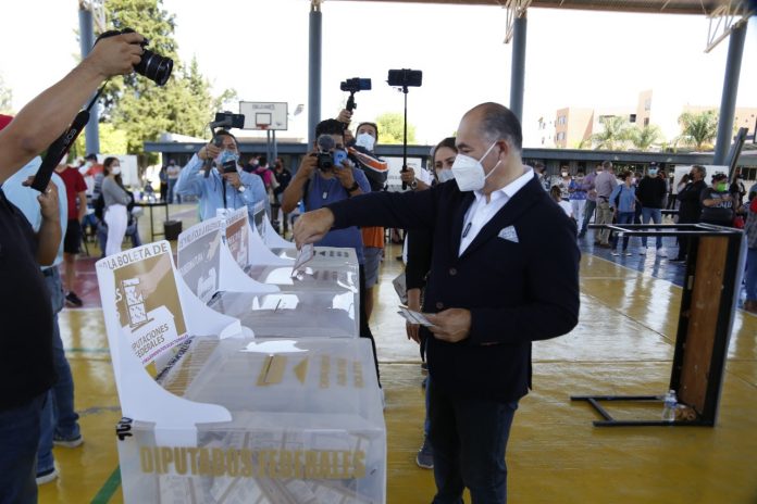 Con grandes ánimos de triunfo y listo para una jornada electoral favorecedora, la mañana de este domingo 6 de junio, el candidato de la coalición Sí por San Luis Potosí, Enrique Galindo Ceballos, acompañado de su esposa Estela y sus hijos, Enrique, Sebastián y Natalia, acudieron a las urnas ubicadas en el Cobach 26 a emitir su voto.