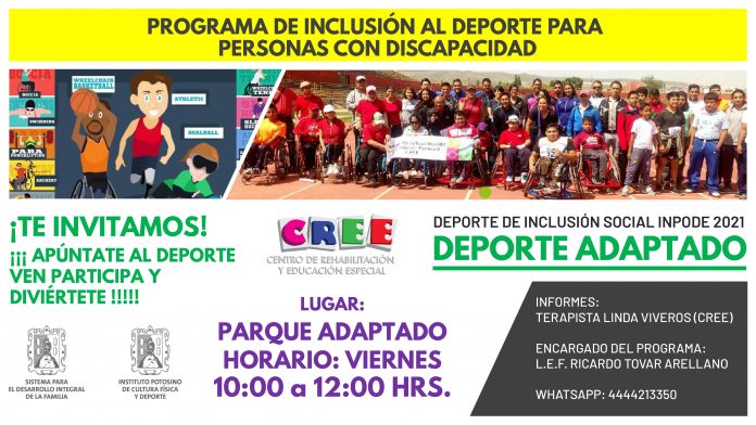 Las actividades del deporte de inclusión social, se desarrollan en el Parque Adaptado del CREE, ubicado en carretera 57, Kilómetro 5.5, a partir de las 10 de la mañana a 12 horas. No hay límite de edad solo tienen que acudir, apuntarse, participar y divertirse; las inscripciones pueden realizarlas en el centro con la Terapista Linda Viveros y en el Inpode con Ricardo Tovar Arellano, encargado del programa.