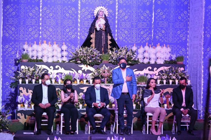 Resalta el esfuerzo de artesanos y artesanas de las cuatro zonas del Estado en la creación del Altar, que es coronado con una Virgen de los Dolores que fue proporcionada por los clérigos responsables del Templo de El Carmen y que, por primera ocasión, sale de la parroquia a la que pertenece, lo cual fue agradecido de manera especial por el Mandatario Gallardo Cardona.