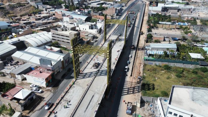 La titular de Seduvop, Isabel Leticia Vargas Tinajero informó que la dependencia supervisa la edificación del magno proyecto de infraestructura urbana, que reporta un avance favorable, concluyendo esta semana con el montaje de contenciones superiores en la rampa sur, se continúa con el colado de banquetas, revisión de carpetas asfálticas en rampas centrales y nivelación de retornos.