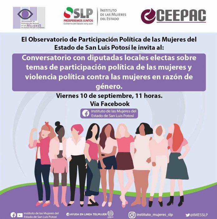 Para analizar de forma conjunta los temas de participación y violencia política contra las mujeres en razón de género, avances y retos legislativos, el Observatorio de Participación Política de las Mujeres, a través del Instituto de las Mujeres del Estado (IMES), ofrecerá por Facebook Live un conversatorio con las legisladoras electas de Sexagésima Tercera Legislatura Local.