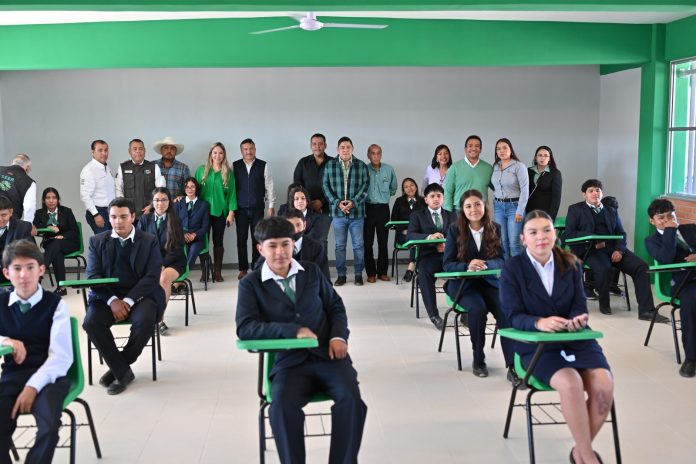Rodeado de la comunidad educativa, el Mandatario Estatal recordó que durante 30 años la maldita herencia no hizo escuelas nuevas, y en tan solo tres años de su Gobierno, se han rehabilitado y construido 400 planteles en todo el Estado, entre ellos, las nuevas instalaciones entregadas que incluye un aula de ciencias, dirección y el área de control escolar, así como la rehabilitación de los edificios y obras como red eléctrica, hidráulica y sanitaria, barda frontal, cercado perimetral, rampas para personas discapacitadas, plaza cívica y andadores.