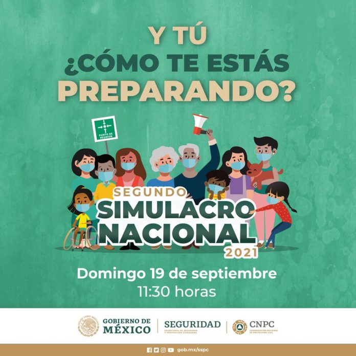 Finalmente dio a conocer que los simulacros se llevarán a cabo de manera simultánea el día 19 de septiembre a las 11:30 horas, y las personas que estén interesadas en participar en este ejercicio aún pueden registrarse en la página: http://www.preparados.gob.mx/simulacronacional2021/