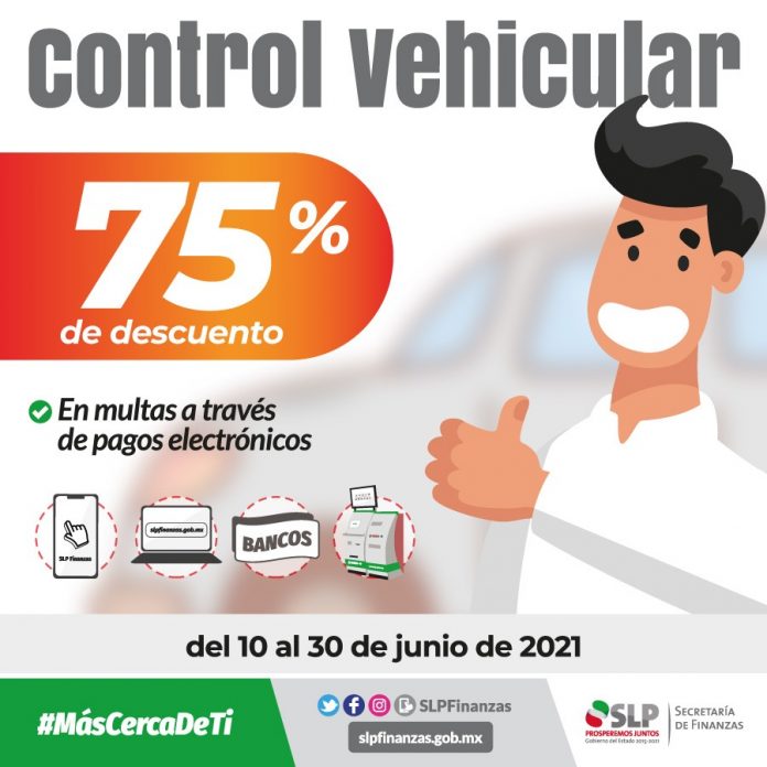 La Secretaría de Finanzas de Gobierno del Estado, dio a conocer que, del 10 al 30 de junio del presente año, se llevará a cabo el programa de descuento en multas de control vehicular con el 75 por ciento, en pagos exclusivamente a través de medios electrónicos.