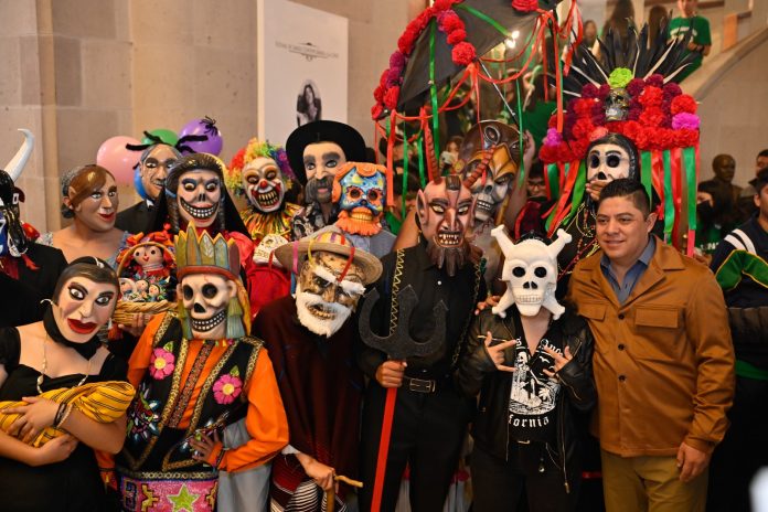 Acompañado de las comparsas de Huehues, el Mandatario Estatal detalló que Xantolo en Chicago, Illinois, será del 18 al 20 de octubre, en alianza con el Museo Nacional de Arte Mexicano y la organización ‘Arts in the Dark’, y abrirá un puente entre comunidades, al preservar la memoria cultural de San Luis Potosí y posicionarlo como un destino de interés por la difusión y protección de raíces culturales, mientras que en la capital potosina las actividades serán del 25 al 27 de octubre.