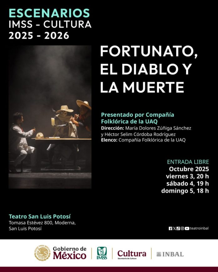 • “Fortunato, el Diablo y la Muerte” – Compañía Folklórica de la Universidad Autónoma de Querétaro. Una obra que une danza y tradición mexicana para narrar la historia de un músico huapanguero que enfrenta al Diablo y a la Muerte en su búsqueda por recuperar lo que más ha amado en la vida.