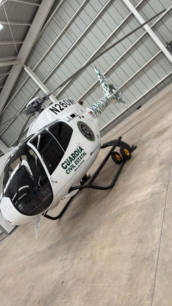 El Gobernador del Estado Ricardo Gallardo Cardona, anunció que arribó a San Luis uno de los helicópteros de última generación que se suma a las tareas de vigilancia y operaciones para fortalecer sin límites la seguridad en las cuatro regiones, como parte de la inversión histórica de 600 millones de pesos, que incluye unidades policiales, cámaras de videovigilancia y arcos con reconocimiento facial.