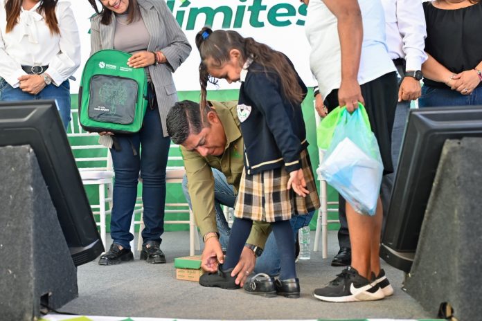 El paquete que entregó el Gobernador incluye: mochila, útiles escolares, zapatos y libros de texto de las distintas materias que son impartidas dentro del programa escolar de primarias y secundarias del Estado.