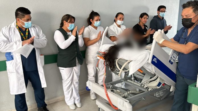 La donadora fue despedida con una valla humana, la cual estuvo conformada por sus familiares y el personal de las distintas áreas del hospital, quienes otorgaron aplausos como muestra de reconocimiento y agradecimiento ante este noble acto de humanismo.