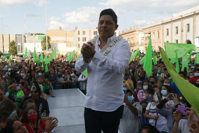 Ricardo Gallardo Cardona se reunió en la Plaza de Los Fundadores con miles de potosinas y potosinos que lo han acompañado en el trayecto de su carrera política y que le impulsaron hasta obtener el triunfo en la elección a gobernador de San Luis Potosí para el periodo 2021-2027. “Agradezco a cada una y uno de ustedes por haber puesto el corazón y la valentía, este triunfo es de ustedes”, expresó el ganador de la contienda.