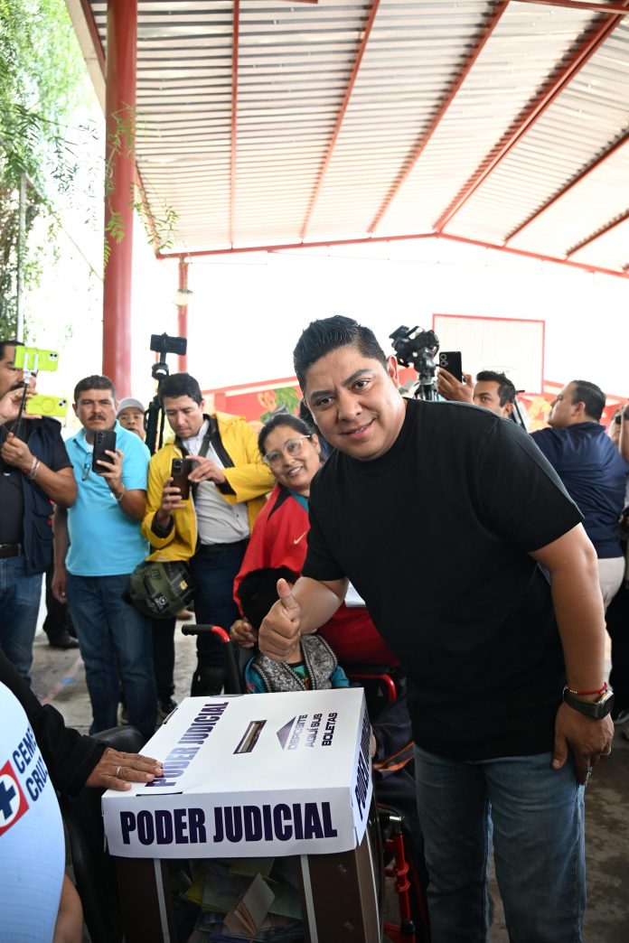Luego de emitir su voto en el marco de la elección al Poder Judicial, el Gobernador del Estado Ricardo Gallardo Cardona convocó a las y los potosinos a participar en esta jornada histórica, al tratarse de la primera vez que se realiza un proceso de esta naturaleza tanto en San Luis Potosí como en todo el país.