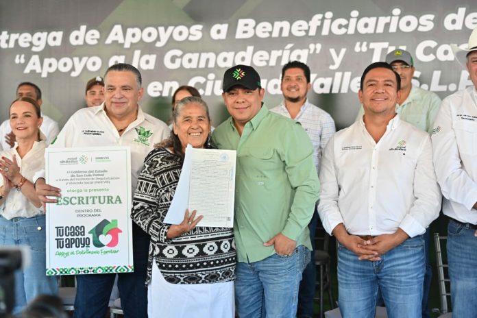 Posteriormente en un evento con familias y productores, el Gobernador Ricardo Gallardo entregó tractores, equipos e implementos agropecuarios con inversión de 20 millones de pesos para diversos municipios de la huasteca, además de escrituras a 140 familias vallenses que por más de 20 años habían solicitado regularizarse de las colonias: Hermosa Provincia, Montecillos, Luis Donaldo Colosio, Balcones, Troncones, La Corriente y Cañitas, con el programa “Tu Casa, Tu Apoyo”.