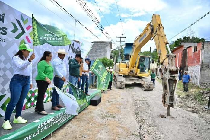 Por la mañana Gallardo Cardona dio el banderazo de arranque a la calle Francisco Javier Mina de la cabecera municipal, con una intervención de 600 metros lineales, que facilitará un tránsito más seguro, ágil y ordenado, además de fomentar el crecimiento urbano con dignidad para todas las personas tras décadas de abandono de la herencia maldita.