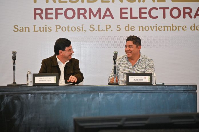 El Gobernador del Estado Ricardo Gallardo Cardona participó en el arranque de la audiencia pública de la Comisión Presidencial para la Reforma Electoral, encabezado por Jesús Ramírez Cuevas, coordinador de asesores de la Presidencia de México, que convocó a legisladores, magistrados, consejeros del Consejo Estatal Electoral y de Participación Ciudadana (Ceepac), académicos, jóvenes universitarios y representantes de diversos sectores sociales.