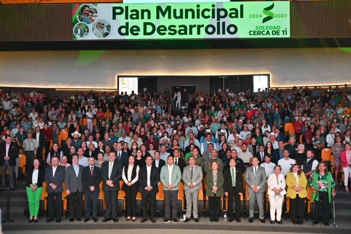 Como muestra del apoyo a las familias de Soledad de Graciano Sánchez, este jueves el Gobernador de San Luis Potosí Ricardo Gallardo Cardona, acudió a la presentación del Plan Municipal de Desarrollo 2024-2027, donde reafirmó su compromiso por transformar al municipio, la solución a las necesidades de la población y las bases para un crecimiento ordenado, justo y sostenible, con proyectos que doten servicios básicos, mayor infraestructura, movilidad y conectividad.