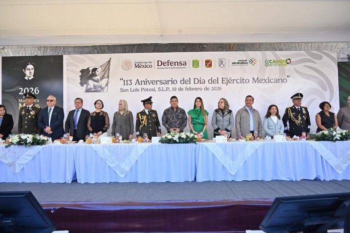 En el marco de la Conmemoración del 113 aniversario del Día del Ejército Mexicano, el Gobernador del San Luis Potosí Ricardo Gallardo Cardona, reconoció la labor histórica y permanente de las Fuerzas Armadas en la defensa de la soberanía nacional y en la construcción de la paz en San Luis Potosí para consolidarlo como uno de los cinco estados más seguros de México, con el apoyo irrestricto y trabajo sin límites del Gobierno Estatal y la coordinación Federal.