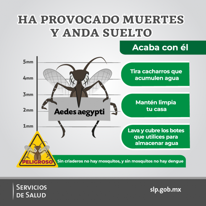 gobiernoslp #dengue By Redacción 1 de junio, 2021 2:18pm 580 Cuota FacebookTwitterWhatsApp jueves, octubre 30, 2025 Sin criaderos no hay mosquitos, mantén limpios tus espacios para evitar la propagación del mosquito transmisor del dengue. Cuota FacebookTwitterWhatsApp Artículo anterior#COVID-19Artículo siguienteIMSS SLP brinda medicina preventiva para el cuidado de la salud