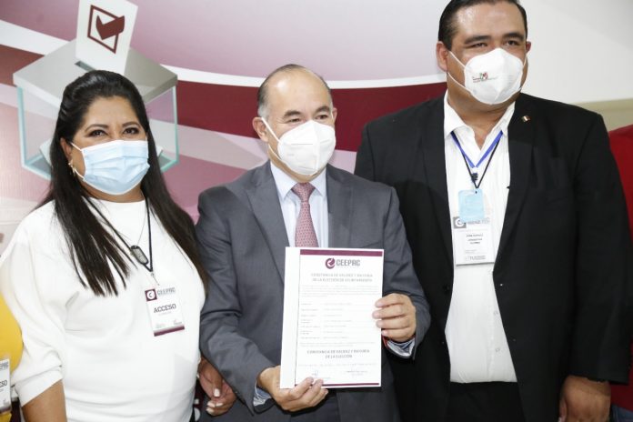 La noche de este viernes el Comité Municipal Electoral del CEEPAC, entregó la constancia de mayoría que acredita al candidato de la coalición Sí por San Luis Potosí, Enrique Galindo Ceballos, como presidente electo de la capital potosina.