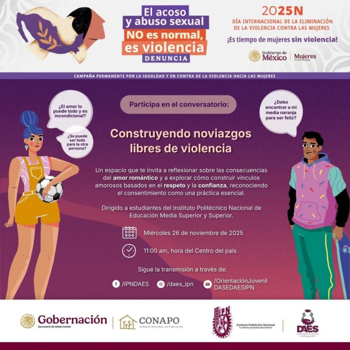 El Coespo invitó a la ciudadanía a sumarse a los 16 días de activismo, del 25 de noviembre al 10 de diciembre, mediante el conversatorio “Construyendo noviazgos libres de violencias”. Este evento, organizado junto con la Secretaría Técnica del Consejo Nacional de Población y el Instituto Politécnico Nacional, se transmitirá el 26 de noviembre a las 11:00 horas a través de las redes sociales del Consejo.