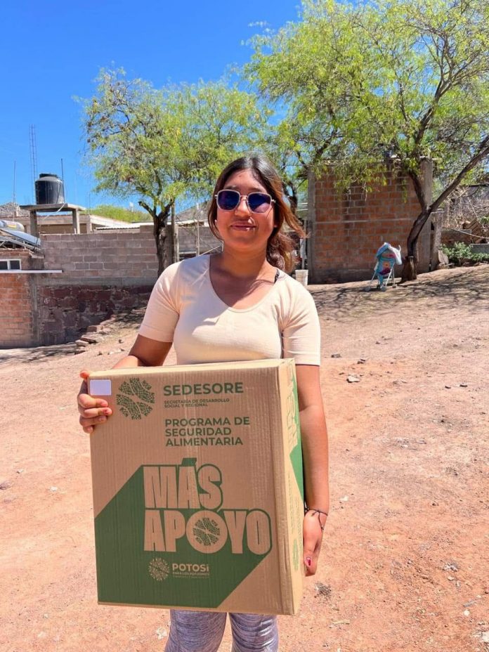 La titular de la Secretaría de Desarrollo Social y Regional (Sedesore), Rosario Martínez Galarza, destacó que, desde el inicio de la actual administración, el Gobernador Ricardo Gallardo Cardona impulsó una estrategia enfocada en llevar apoyos alimentarios de calidad a los hogares potosinos, con el objetivo de fortalecer la nutrición familiar y reducir brechas históricas de desigualdad. Bajo este enfoque, la entrega de paquetes de alimentos de calidad se ha consolidado como una acción de alcance estatal y con un impacto tangible en las condiciones de vida de la población.