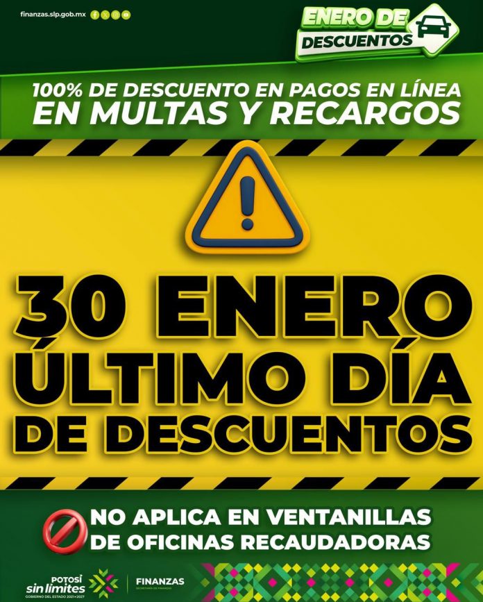 * El programa Estatal de descuentos en multas y recargos concluye el 30 de enero y aplica únicamente en pagos electrónicos.