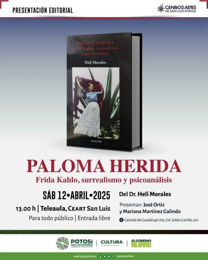 A las 13:00 se presentará el libro “Paloma Herida”, que explora la vida de Frida Kahlo en el contexto del surrealismo y el psicoanálisis, en la Teleaula del Centro de las Artes (Ceart). Esta actividad promete ser un deleite para los aficionados a la literatura y la historia del arte.