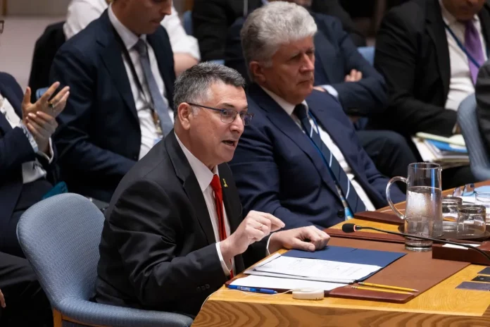 Gideon Saar, ministro de Relaciones Exteriores israelí, participó el martes 5 de agosto en una reunión especial del Consejo de Seguridad de la ONU.
