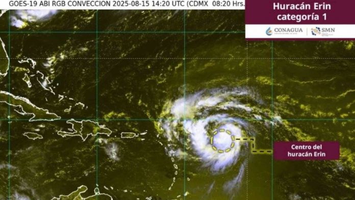 De acuerdo con los últimos informes de la Comisión Nacional del Agua (Conagua), “Erin” se intensificó a huracán de categoría 1 en la escala Saffir Simpson. Debido a su distancia y desplazamiento no representa peligro para costas nacionales.