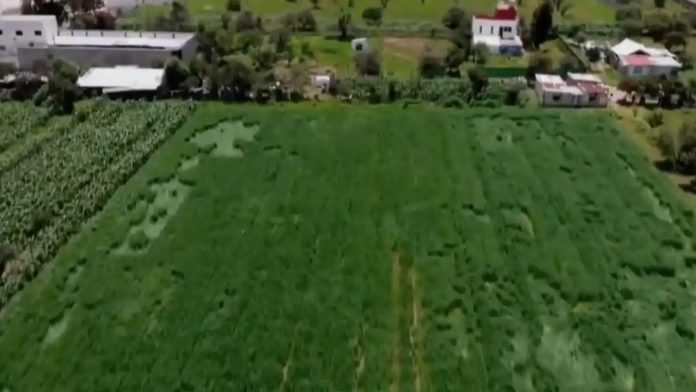 Habitantes de la zona donde se formó el enorme socavón el pasado 29 de mayo en Puebla, ahora sostienen que aparecieron extrañas figuras irregulares en campos de cultivo de cebada.
