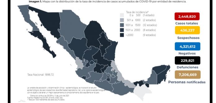 La Secretaría de Salud a nivel federal informó que en México se registran ya dos millones 448 mil 820 casos confirmados por Covid 19, es decir, que en 24 horas incrementaron 3 mil 282 casos en la República mexicana.