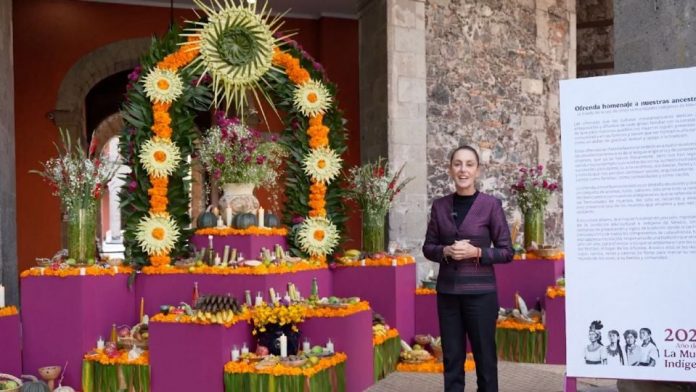 Este año, la ofrenda fue dedicada a las mujeres indígenas del país con motivo del año de la Mujer Indígena, explicó la mandataria en el breve video.