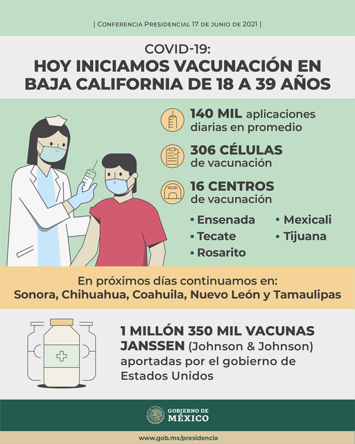 Hoy inicia en Baja California el programa especial de vacunación de los 39 municipios fronterizos del país para la reapertura de la frontera con EEUU.