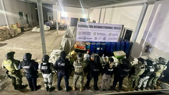 Autoridades aseguraron tres narcolaboratorios en Culiacán, donde hallaron cientos de kilos de sustancia terminada y precursores químicos