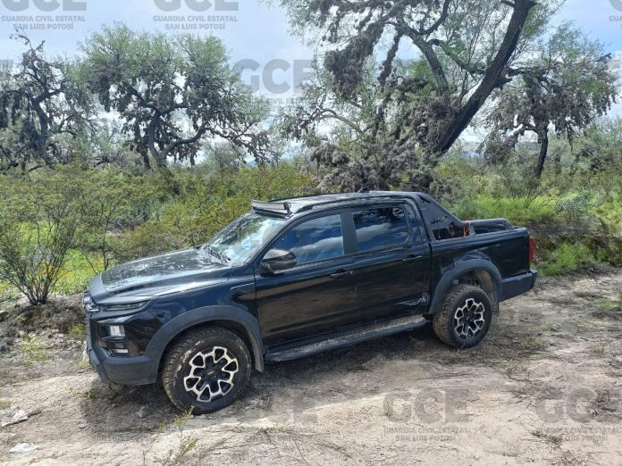 Los hechos tuvieron lugar en el municipio de Matehuala, donde fue asegurada una camioneta marca JAC, color negro modelo 2025, la cual tenía reporte de robo vigente y que contaba con blindaje artesanal, en el vidrio del medallón trasero.