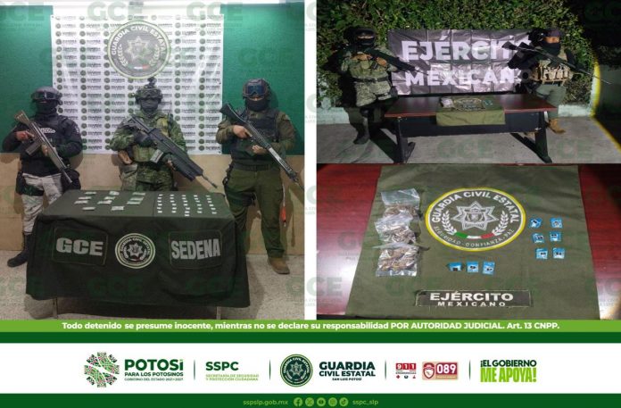 S.L.P.- Como parte de la Base de Operaciones Mixtas Interinstitucional implementada en todo el territorio potosino, elementos de la Guardia Civil Estatal, en coordinación con SEDENA, aseguraron 54 dosis de enervantes.