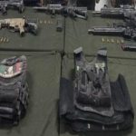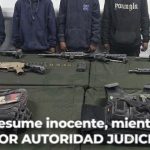 A dichas personas se les aseguraron cinco armas de fuego largas, cuatro tipo AR-15, y una multicalibre, ademas de cinco cargadores, 75 cartuchos útiles, 12 artefactos de varilla conocidos como poncha llantas y cuatro chalecos tácticos.