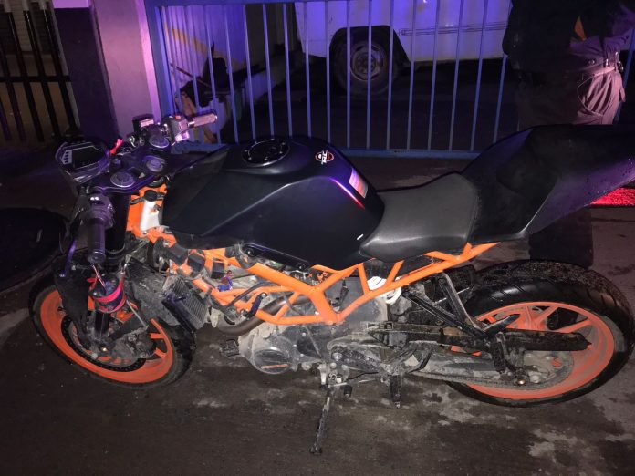 La motocicleta no contaba con el faro delantero, sin batería ni placas de circulación.