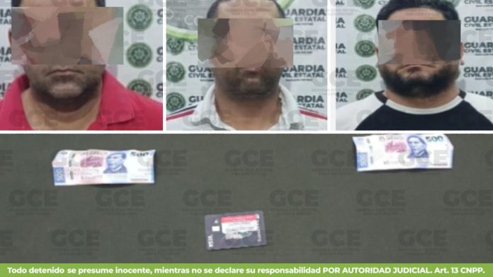 Nuestros elementos de la Guardia Civil Estatal, detuvieron a tres personas de nacionalidad venozolana, Marco “N” de 40 años, Freddy “N” de 40 años y Andry “N” de 37 años, señalados de robar tarjetas bancarias y NIPs (contraseñas) a través de métodos de engaño a usuarios de cajeros automáticos.