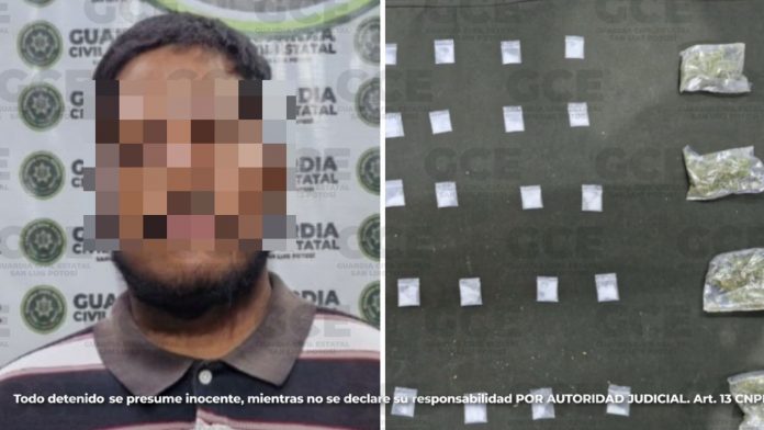Durante los operativos desplegados en el municipio de Villa de Ramos, policías de la Guardia Civil Estatal (GCE), detuvieron a Carlos “N” de 20 años de edad, luego de que se les aseguraran 40 dosis de metanfetaminas y cuatro bolsas con marihuana. Mediante esta estrategia, se logró evitar que dichas dosis de sustancias nocivas, fueran comercializadas, lo que permite evitar que la incidencia criminal aumente.